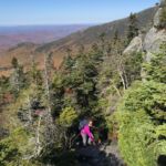 11 October 2019Mount Mansfield is Vermont’s highest peak, at 1340 metres (4395 feet). After climbing up through beautiful forests on a rocky path, we reached the Butler Lodge, with its fantastic views out through a gap in the trees. Directly after the lodge we entered the Wampahoofus Trail, a few kilometres of sometimes very entertaining scrambling – at one point the trail passes through a tunnel created by a pile of massive boulders.